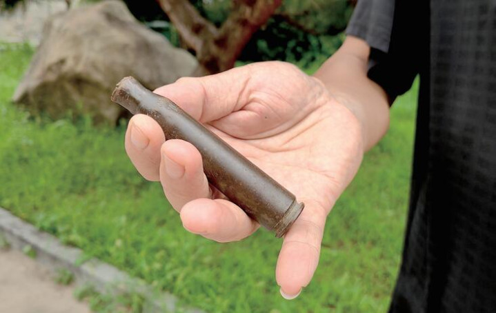 张杰在银杏树下捡到的弹壳。记者刘小东摄