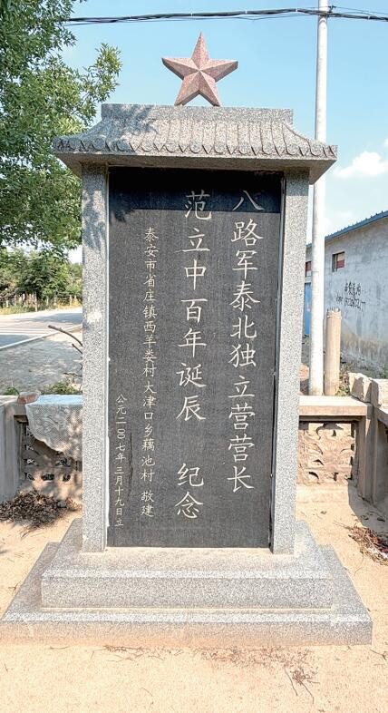 省庄镇羊东村纪念范立中的石碑。通讯员供图