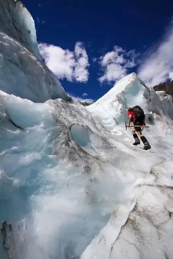 在福克斯冰川徒步,感受万年蓝冰的巍峨;