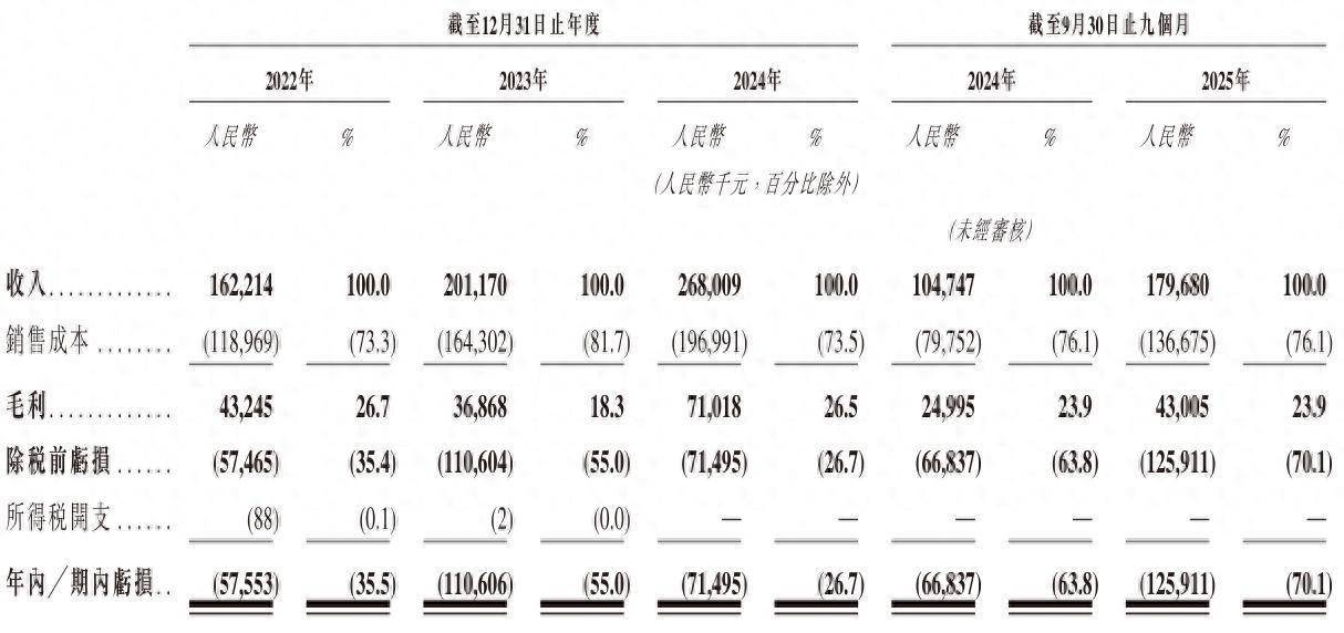 翼菲智能2025年前9个月营收为1.8亿元,上年同期的营收为1.05亿元;毛利为4301万,上年同期的毛利为2500万元;期内亏损为1.26亿元,上年同期的期内亏损为6684万元。