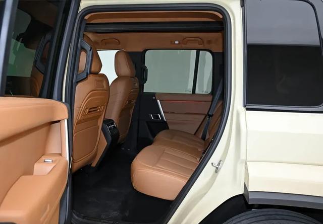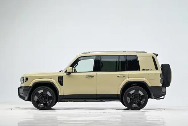 车身侧面是典型的“方盒子”造型,平直的车顶线条不仅强化了硬朗风格,也有利于拓展车内头部空间。前后轮眉明显向外凸出,营造出宽体视觉效果。底盘方面,新车采用前麦弗逊、后H臂多连杆独立悬架,最小离地间隙220mm,最大涉水深度600mm,在通过性数据上表现不错