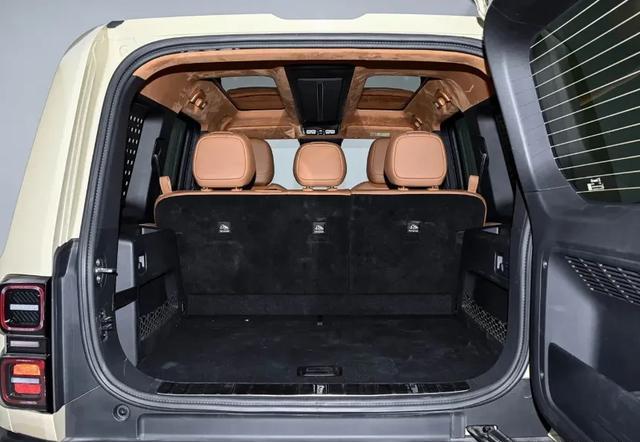 车尾设计延续了整车的硬派风格,外挂式备胎没有缺席,尾门采用横开式设计,并在左侧设置了竖置门把手,这些细节都让尾部看起来更加粗犷,也提升了使用的便利性
